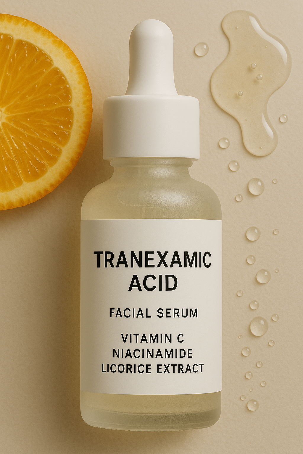 트라넥사믹애씨드(Tranexamic Acid)는 라이신에서 유래한 합성 아미노산 유도체입니다. 본래는 과도한 출혈을 치료하는 데 사용되던 지혈제 성분이었으나, 피부 미백 효과가 우연히 발견되면서 화장품 성분으로 크게 주목받기 시작했습니다. 화장품 성분표에서는 주로 'Tranexamic Acid'로 표기되며, '트라넥삼산', '트라넥사민산'이라는 별칭으로도 불립니다.